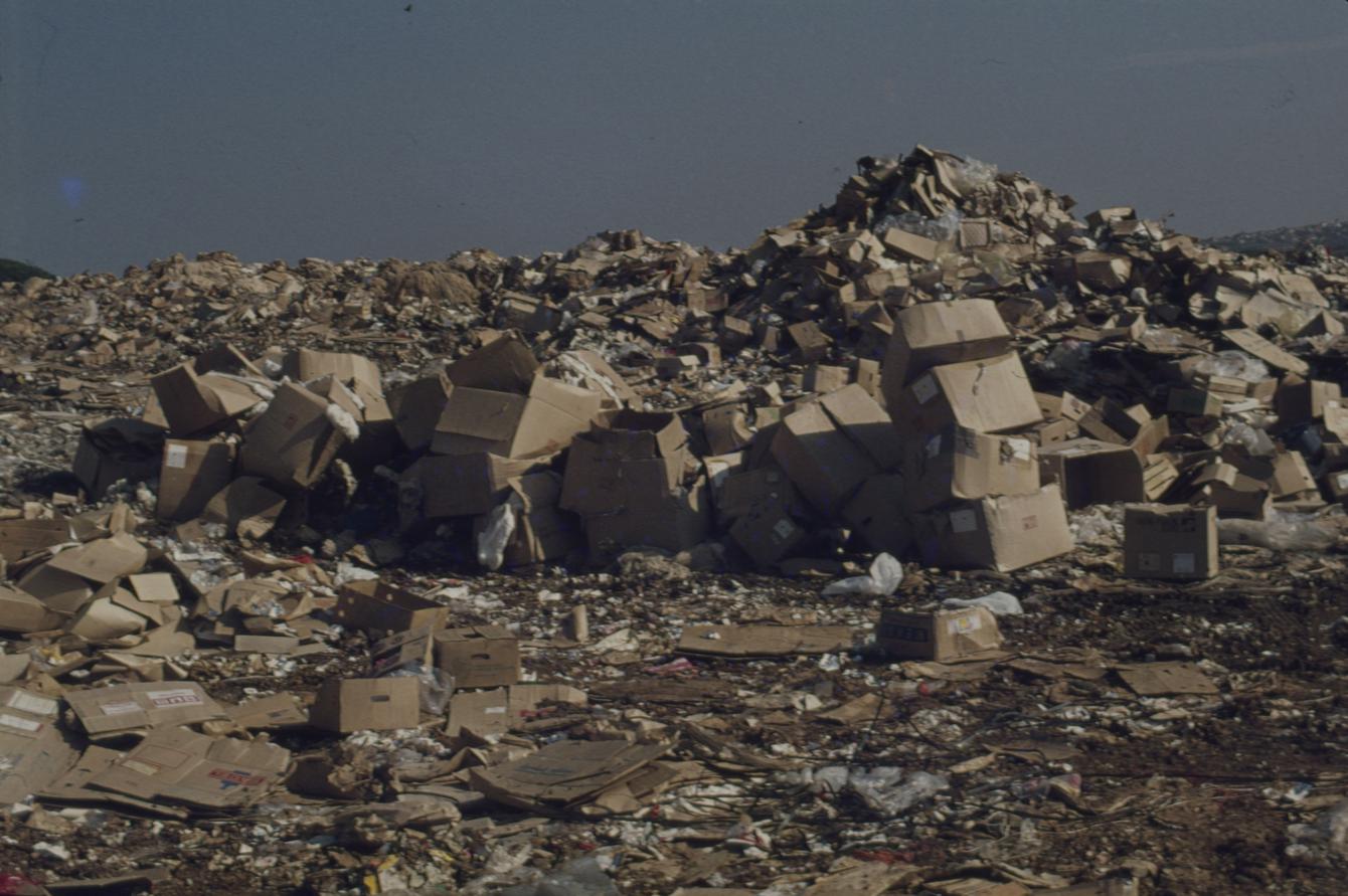 Gradski deponij - hrpe smeća, a u I. planu kartonske kutije