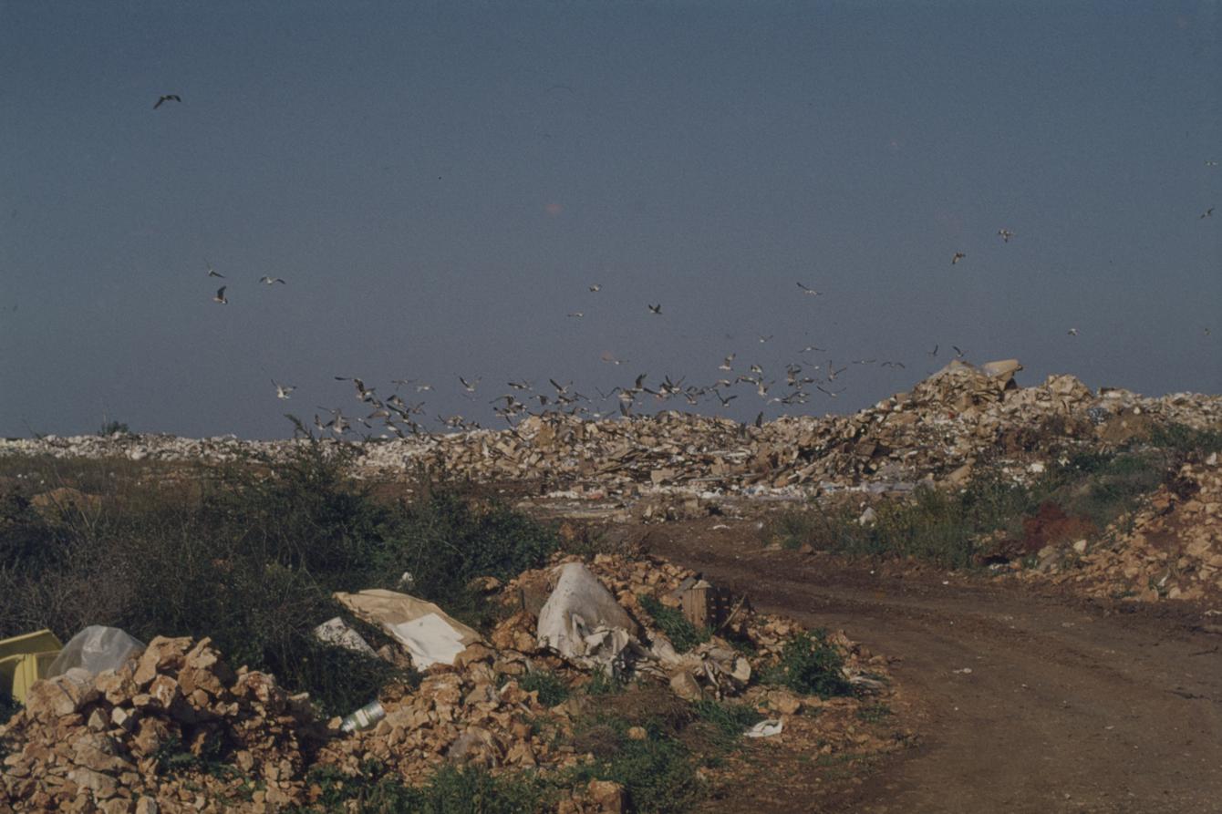 Gradski deponij, nakupine smeća iznad njega jato galebova