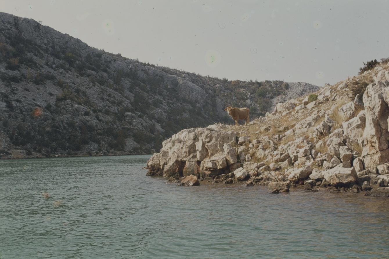 Kanjon Zrmanje iznad Obrovca krava na stijeni pored vode