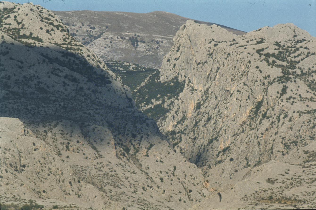 Kroz proboj Velike Paklenice pogled s mora kroz teleobjektiv