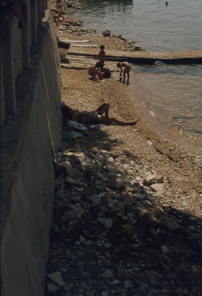 Kupači ispred žute kuće; Ulica JNA 12, pored smeća
