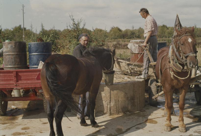 "Lokvenjak"; konj na pojilištu tj. na kruni pije iz kante s kojom se grabi voda