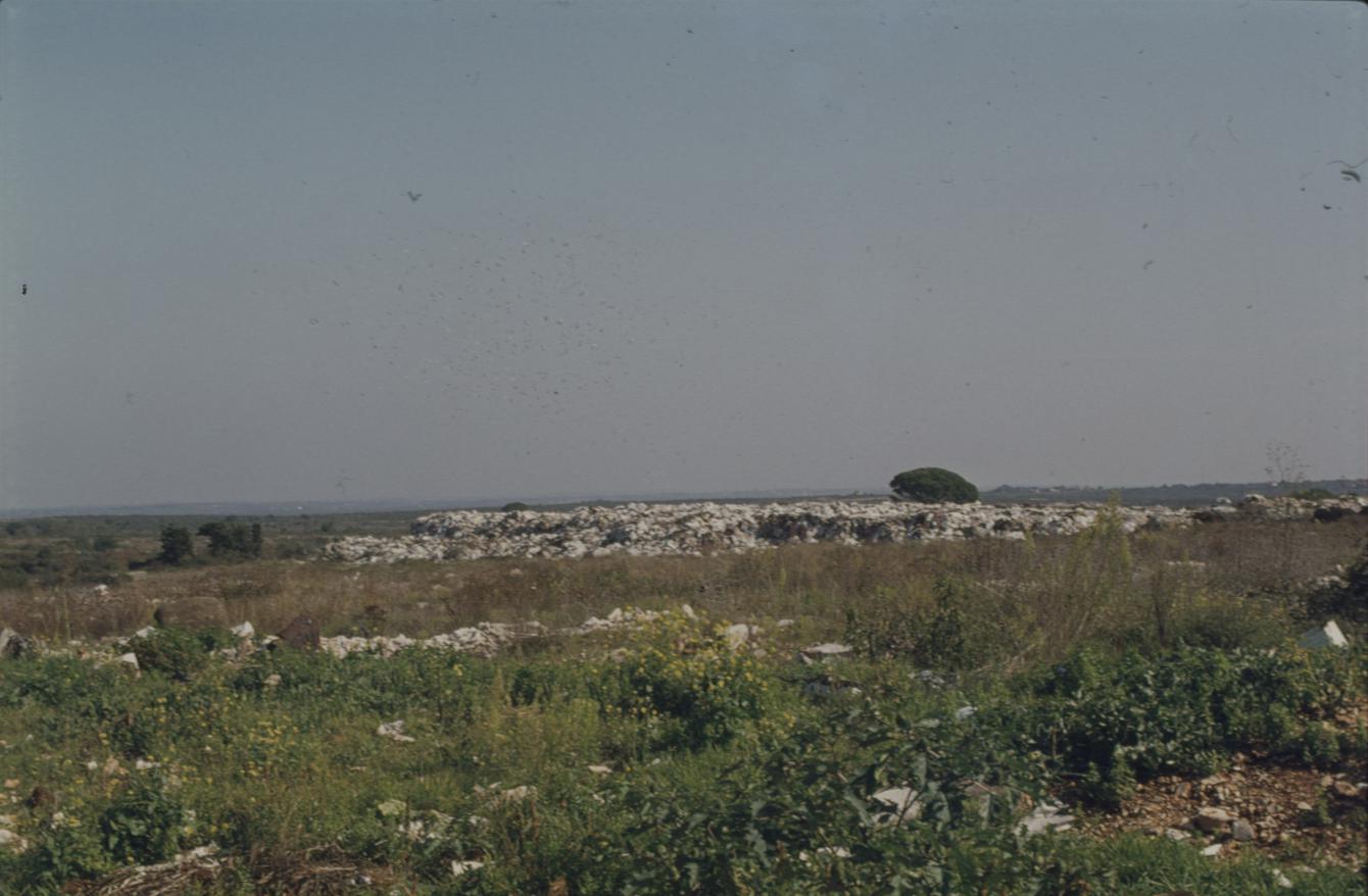 Smeće u hrpi okruženo zelenilom, Gradski deponij; bor u pozadini