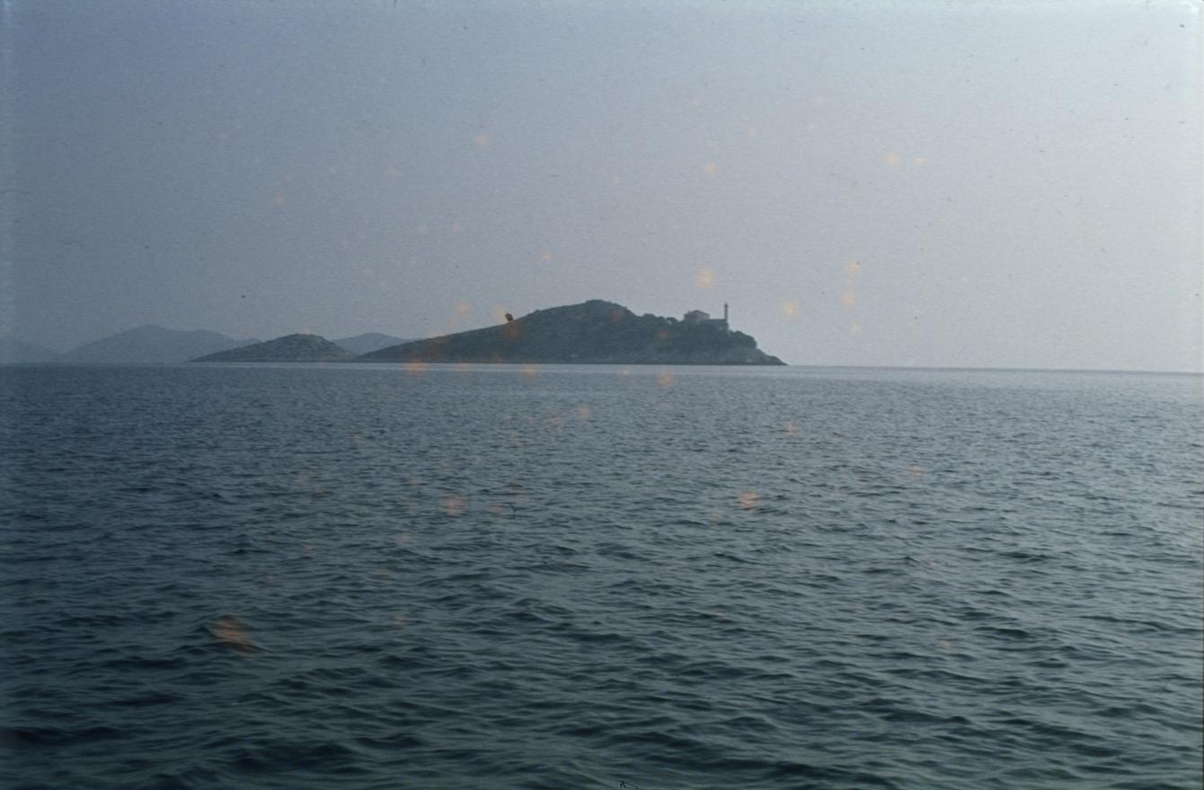 Svjetionik Tajer na Sestricama; pogled od ispod klifova Dugog otoka