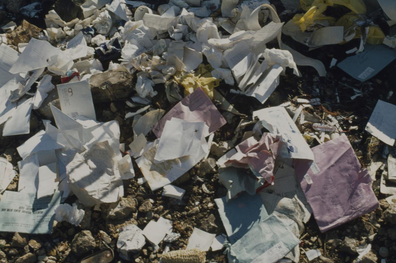 Tvornička korespondencija - papir na otpadu pored tvorničkog zida