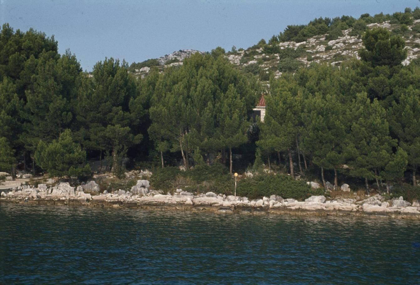 Uvala Magrovica; u šumici kuće s crvenim krovom (Šveđanin)