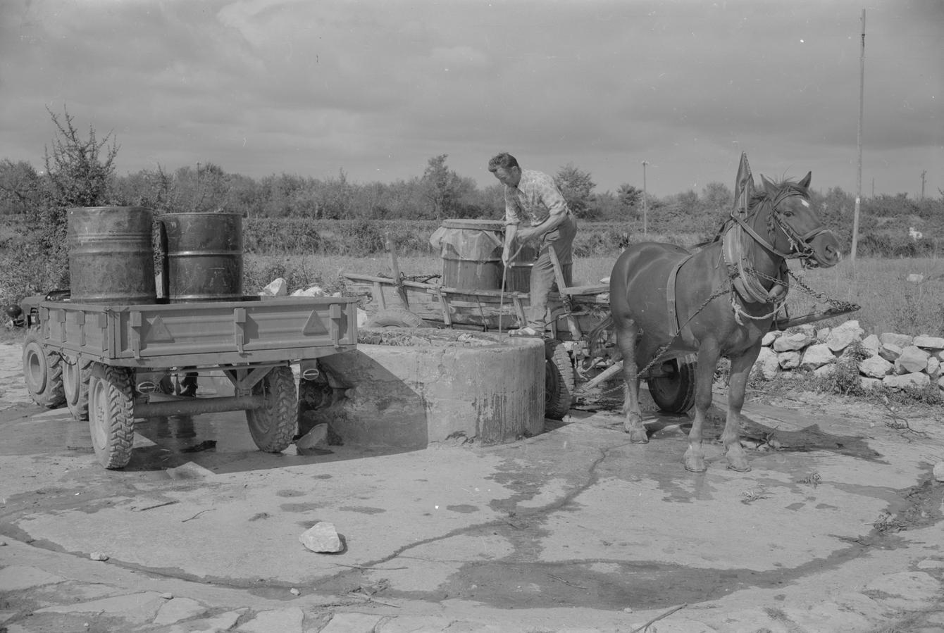 Lokvenjak; pored bunara traktori i konjska zaprega