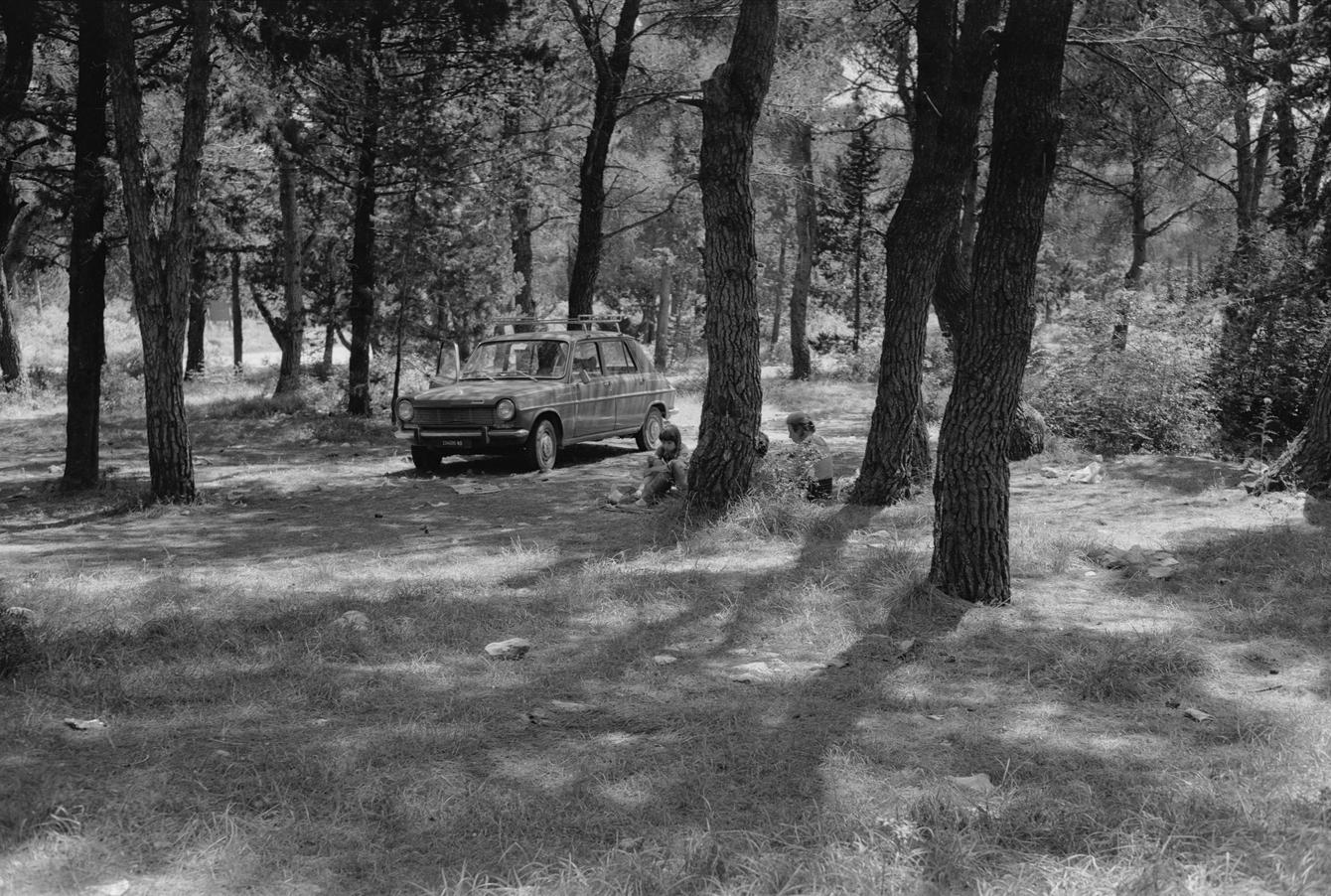 Raskrižje od Nina prema Boriku. Istočno od puta; pored kola turisti i papir na hrpi